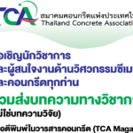 ขอเชิญนักวิชาการและผู้สนใจงานด้านวิศวกรรมซีเมนต์และคอนกรีตทุกท่าน ร่วมส่งบทความวิชาการ (ไม่ใช่บทความวิจัย) เพื่อตีพิมพ์วารสารคอนกรีต (TCA Magazine)