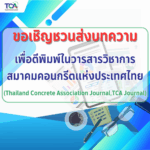 ขอเชิญชวนส่งบทความ เพื่อตีพิมพ์ในวารสารวิชาการ สมาคมคอนกรีตแห่งประเทศไทย