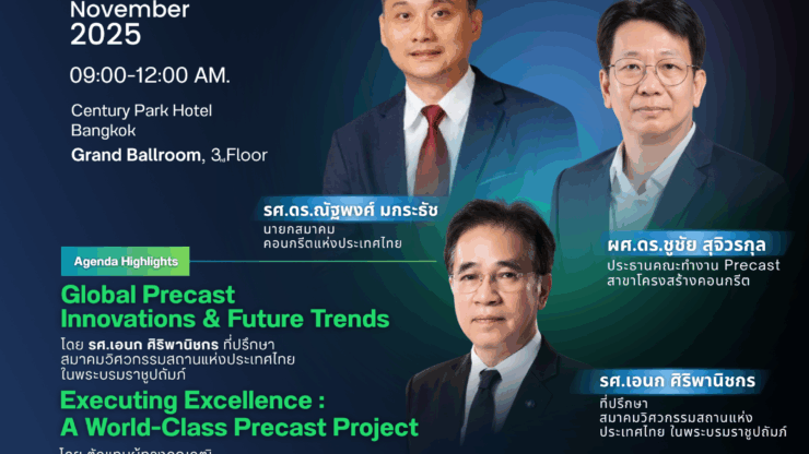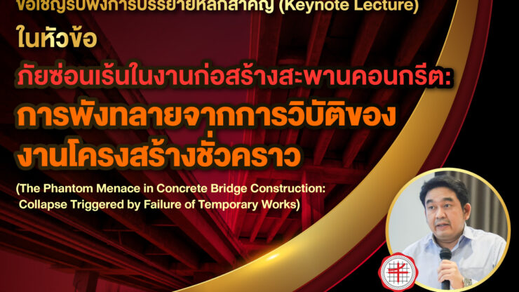 ขอเชิญรับฟังการบรรยายหลักสำคัญ (Keynote Lecture) หัวข้อ ภัยซ่อนเร้นในงานก่อสร้างสะพานคอนกรีต : การฟังทลายจากการวิบัติของงานโครงสร้างชั่วคราว