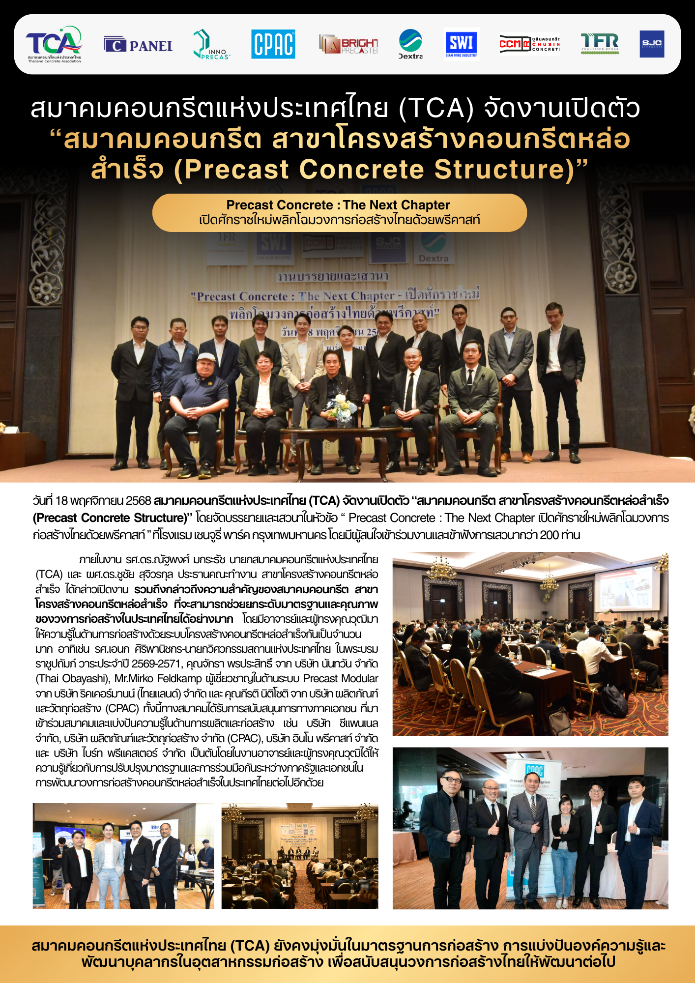 สมาคมคอนกรีตแห่งประเทศไทย (TCA) จัดงานเปิดตัว “สมาคมคอนกรีต สาขาโครงสร้างคอนกรีตหล่อสำเร็จ (Precast Concrete Structure)”